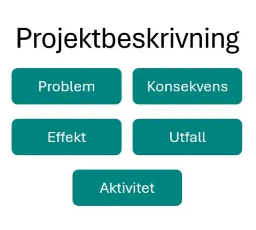 Med hjälp av modellen nedan lämnar du in en beskrivning till kansliet där du berättar: vilket problem du har identifierat, vilka konsekvenser problemet har, vilka effekter du vill uppnå med insatsen, vilka resultat insatsen förväntas ge och vilka aktiviteter du planerar för att nå dessa effekter.
